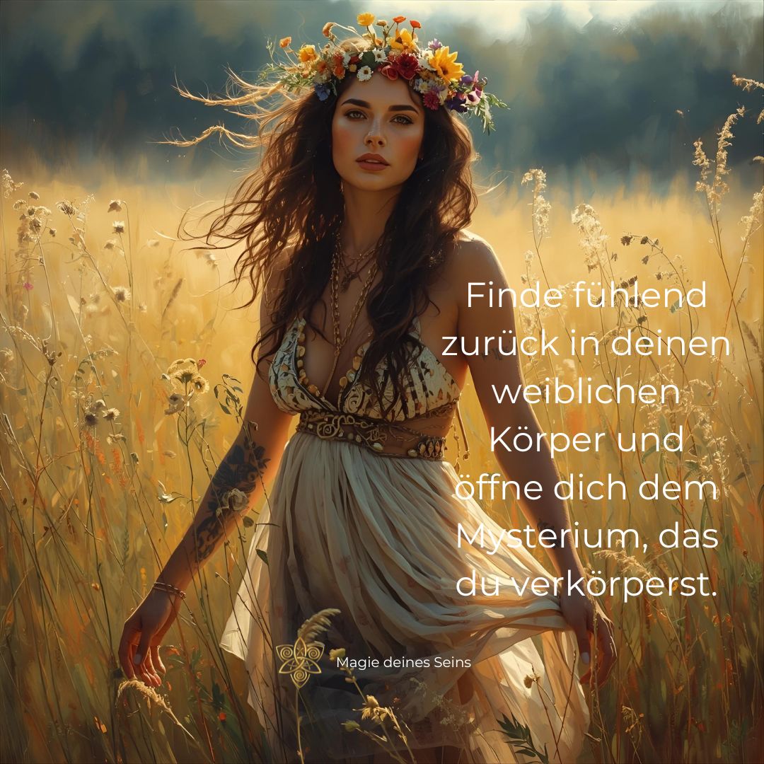 Erhöhe deine Frequenz und öffne dich dem Mysterium, dass du als Frau verkörpern kannst. Deine innere Frau trägt ein besonderes Potenzial in sich. Sie besitzt Gaben, die in dir und aus dir heraus entfaltet werden möchten.